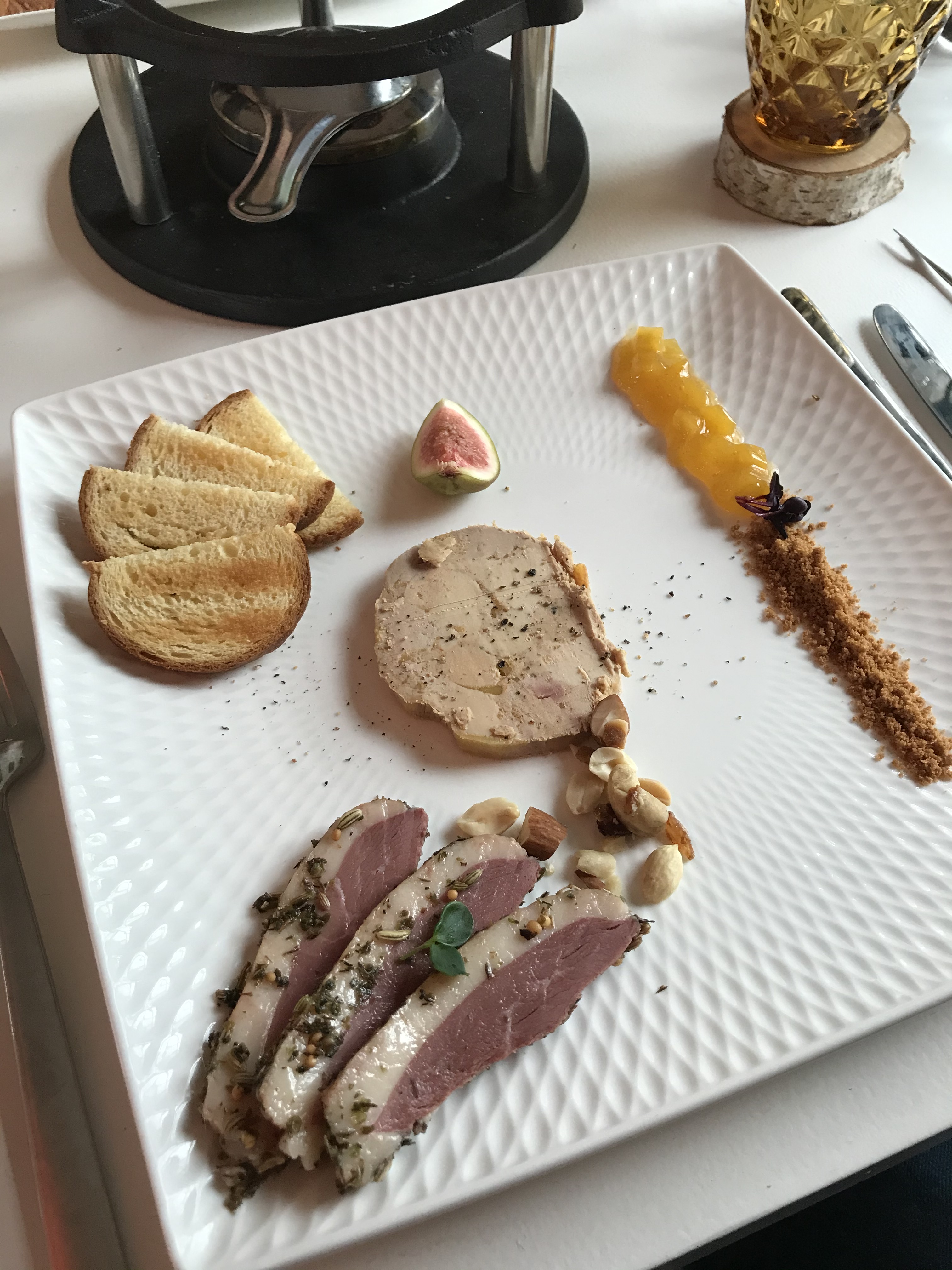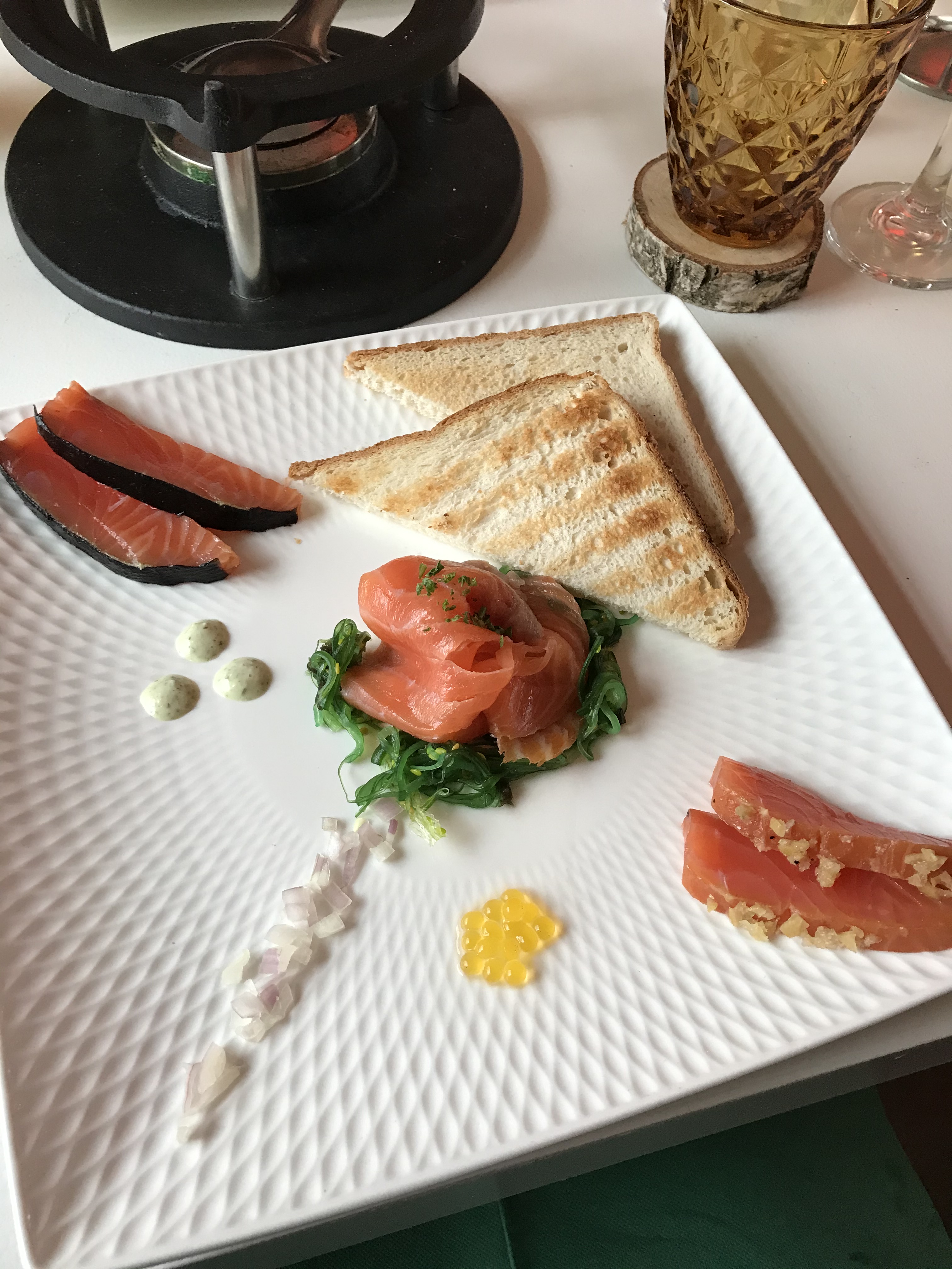 Pour 35€ par personne, vous aurez un apéritif avec boisson, une entrée, une fondue (ou raclette) et un dessert. C’est honnête et très complet (on est sortis de là en se rouleboulant jusqu’à la voiture tellement on avait mangé).