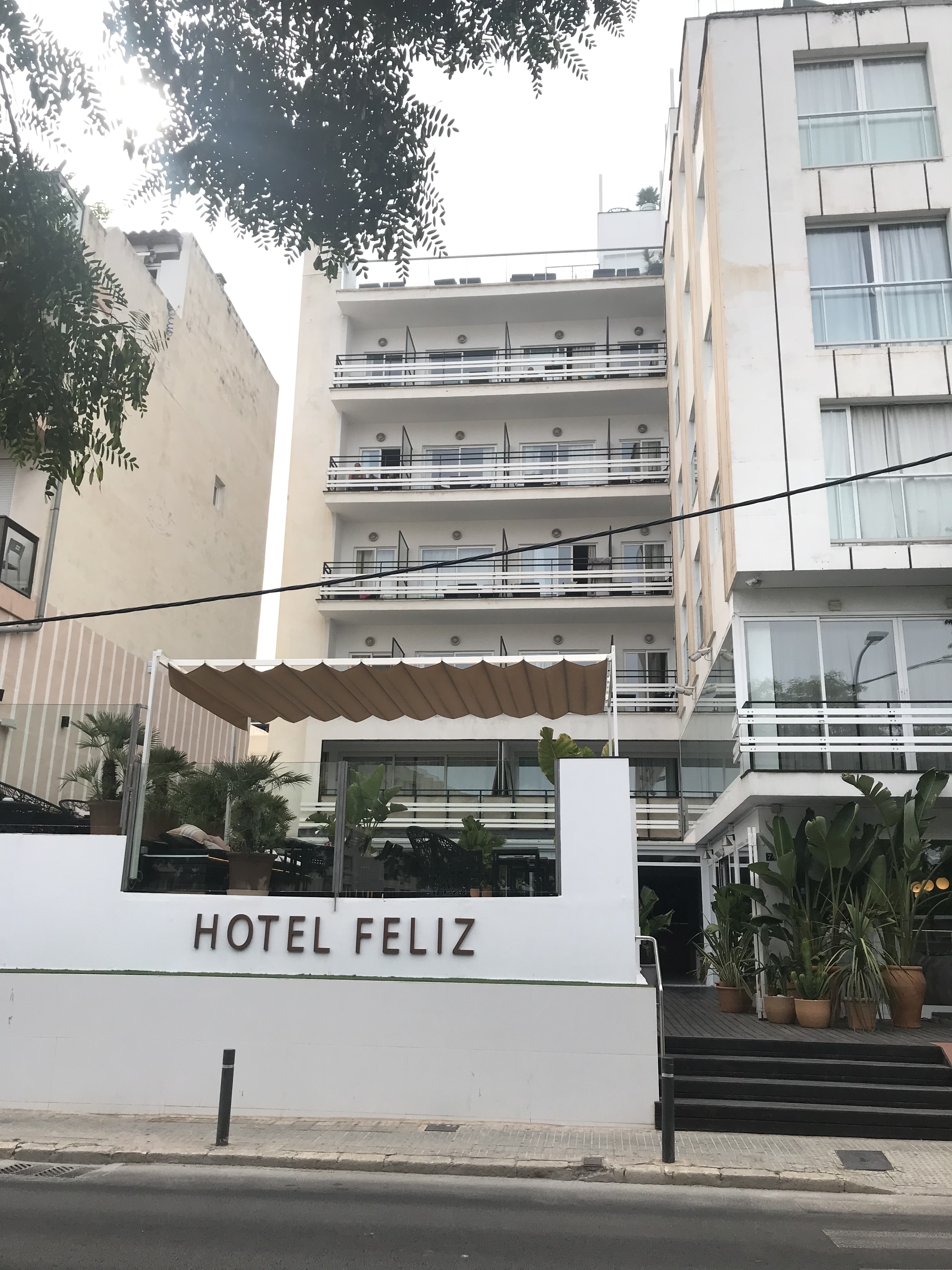 Comme nous avions quand même envie de visiter et de pouvoir aller manger à l’extérieur (et pas en all inclusive), nous avons choisi un hôtel à 10 minutes en bus de Palma : L’Hôtel Feliz ! Pour une semaine, une chambre double et le petit-déjeuner inclus, nous avons payé +/- 1000€ (avec le Covid, les prix ont réellement augmenté, c’est abusé…). À part la taille de la salle de bain qui était relativement petite, il n’y a rien à redire. Climatisation dans la chambre, deux petites piscines, un sauna gratuit, deux terrasses, un lit confortable et un petit-déjeuner continental : que demander de plus ?