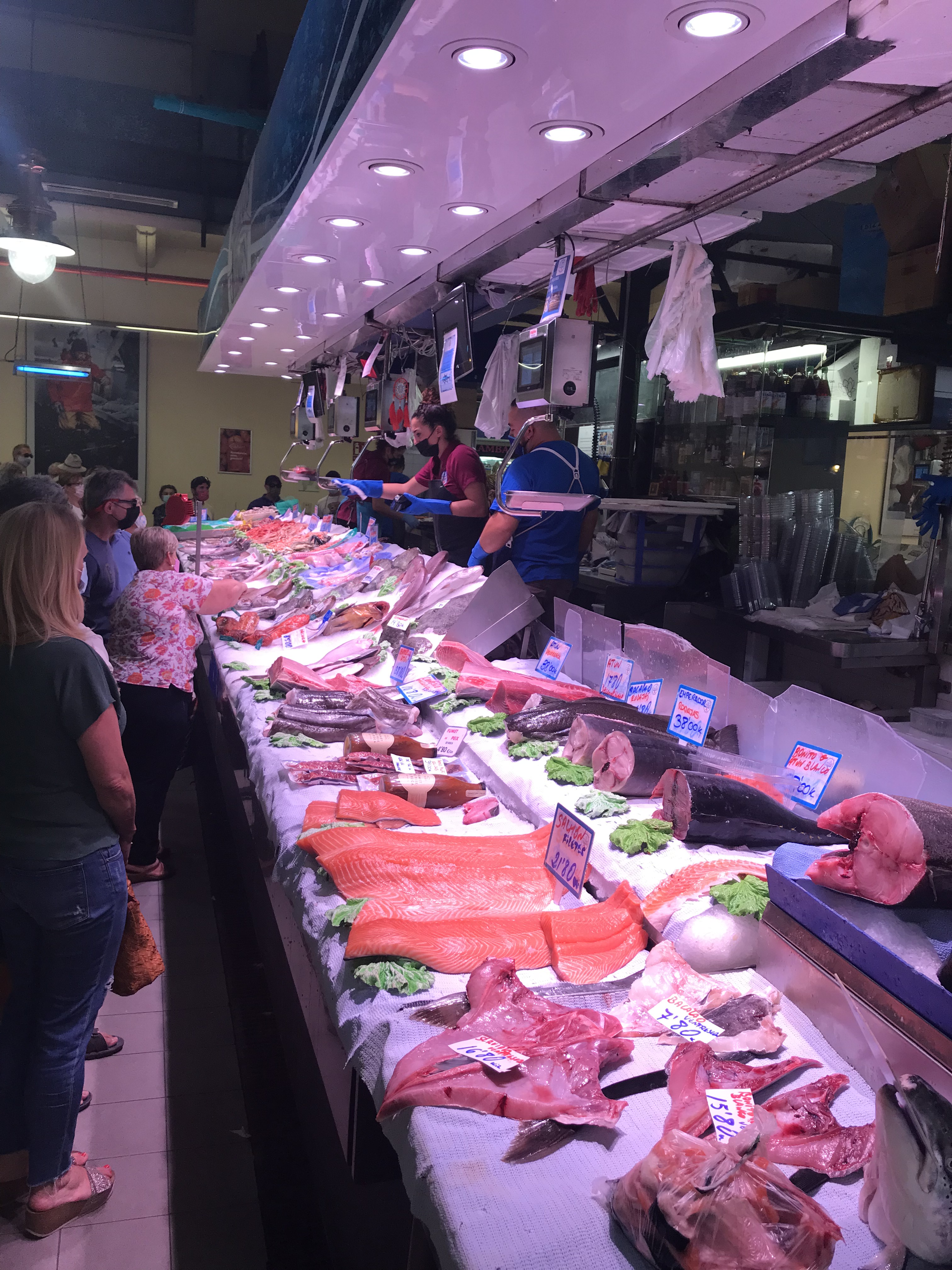 Le marché de l’Olivar est dans le centre de Palma et il y a plusieurs petits bars à tapas dans le marché. On est allés au « Bar del Peix » où ils servent pleins de fruits de mer et ils ont un bar à huîtres. J’ai enfin pu goûter des oursins !!!