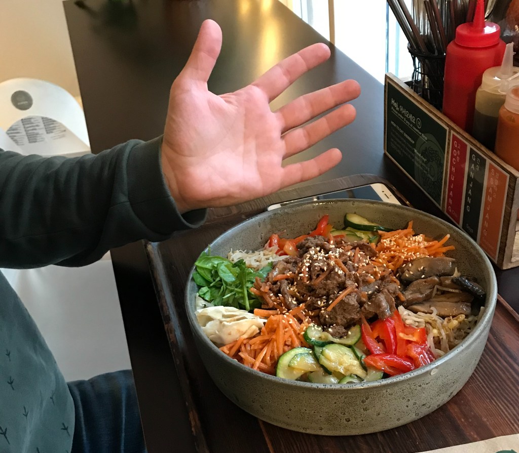 Mais ! Après une rapide recherche sur internet, j’ai dégoté un petit restaurant coréen, Kopan Rice, qui sert des bibimbap (traditionnel bol de riz sauté avec légumes et accompagné de sauce) : absolument délicieux et abordable. Et comme vous pouvez le voir sur la photo, les quantités sont généreuses !